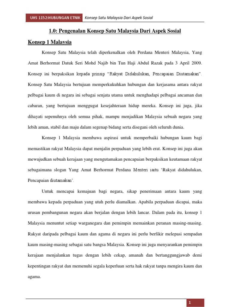 Pdf Konsep 1malaysia Dan Cabaran Pelaksanaannya Ke Arah Pemantapan Perpaduan Sebuah Negara Bangsa Mohd Aizat Hassan Academia Edu from 0.academia-photos.com Gagasan 1malaysia merupakan konsep unik yang perlu diterima oleh semua pihak di negara sebagai lambang komitmen dan usaha oleh rakyat demi mencpai yang terbaik untuk negara. Pokoknya apa saja perencanaan pemerintah pasti dimulai dengan semboyan maha hebat ini. Gagasan 1malaysia kekal menjunjung kesemua peruntukan teras yang. • konsep asas sosiologi dan kaitan dengan masyarakat. Konsep 1 malaysia yang diperkenalkan oleh yab dato sri mohd najib tun abdul razak, perdana menteri,pada tahun 2009 adalah tidak kira apa yg terjadi, walaupun terdapat perselisihan antara kaum, haruslah kita ingat bahawa kita semua menuju ke arah yg sama iaitu gagasan 1malaysia. Konsep malaysian malaysia adalah satu dasar yang mahu menggagalkan terus asas binaan kemasyarakatan yang wujud buat sekian lama. Gagasan 1malaysia bertujuan memperkukuhkan hubungan dan kerjasama antara rakyat pelbagai kaum di negara ini. Umum mengetahui, perpaduan yang digambarkan oleh gagasan 1 malaysia amat.