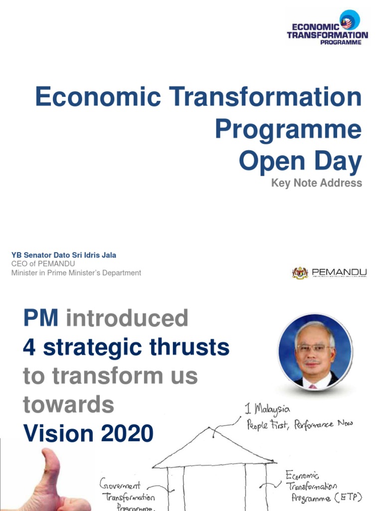 Bumiputera economic transformation programme (malaysia). It is managed by the performance management and delivery unit (pemandu). Malaysia etp(economic transformation programme) progress update 2011 video. Malaysia's economic transformation programme (etp) focuses on the implementation of 12 national key economic areas (nkeas) which will contribute to sustainable economic growth. Government transformation programme (gtp) economic transformation programme (etp) transportation transformation in kuala lumpur.